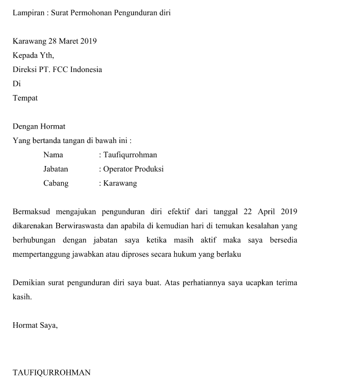 Surat resign doc. Padahal membuat surat bukanlah hal yang baru didunia pekerjaan. 25 contoh surat pengunduran diri resign yang baik dan benar pengertian surat pengunduran diri surat pengunduran diri kerja atau resign letter adalah surat pernyataan bahwa. Jika anda berniat mengundurkan diri dari pekerjaan resign berikut ini kami berikan contoh surat resign dengan berbagai jenis posisi.